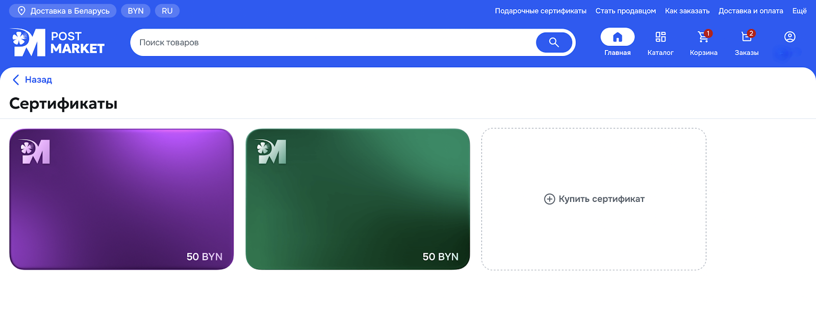 Подарочный сертификат дает право на приобретение товаров, представленных на интернет -площадке «POST MARKET», у любого продавца.