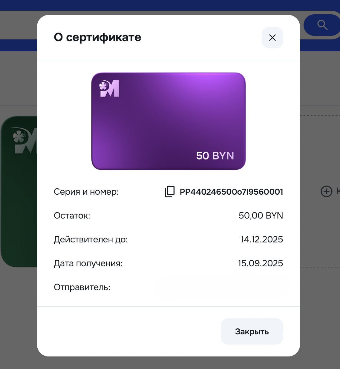 Номер сертификата: присваивается после оплаты заказа на приобретение сертификата и направляется покупателю и получателю на адреса электронной почты, указанные при оформлении.